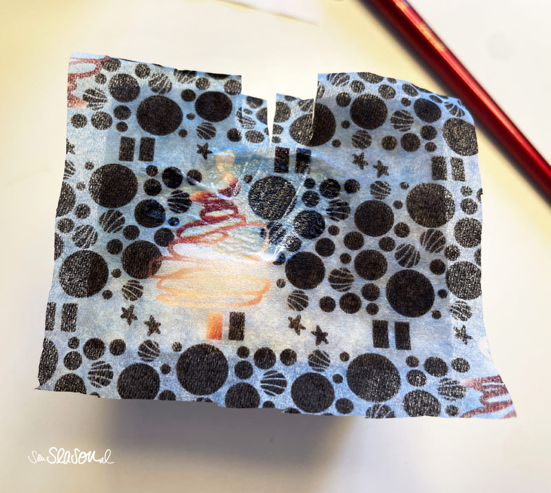 - Schneide die Serviette auf die ungefähr passende Größe zu.