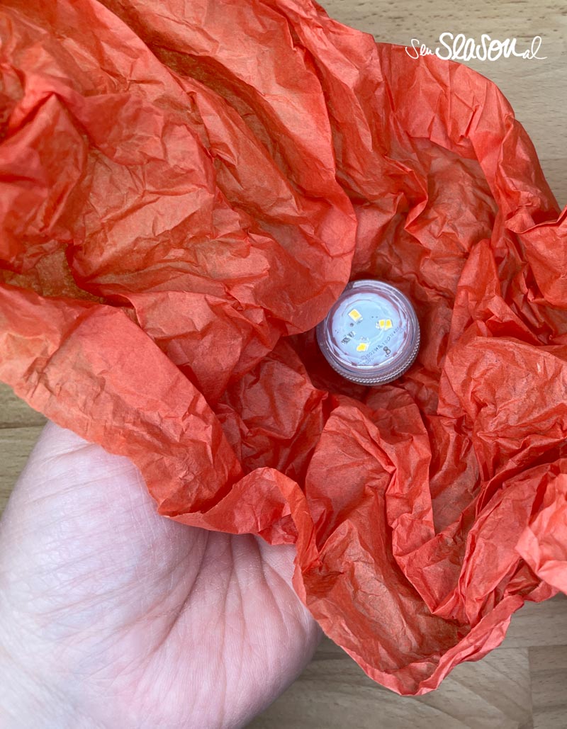 - Schritt 3: Packe ein elektrisches Teelicht zwischen das Seidenpapier.